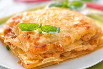 - Continue intercalando com a mussarela e o peito de peru, por cima coloque o molho branco e leve ao forno por cerca de 15 minutos.