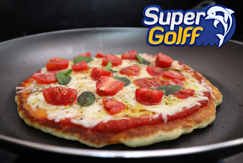 ? Retire a pizza da frigideira, corte em fatias e sirva imediatamente.